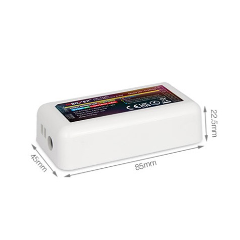 • Tecnologia di trasmissione wireless 2.4G RF • Può controllare i prodotti della serie MiBoxer/Mi-Light 2.4G • Distanza di controllo: 30 m • 16 milioni di colori tra cui scegliere • Luminosità, temperatura colore e saturazione regolabili Tensione di lavoro: 3 V (AAA*2 PZ) Consumo energetico in standby: 15μA Potenza di trasmissione: 6dBm RF: 2,4 GHz Metodo di modulazione: GFSK Distanza di controllo: 30 m Temperatura di lavoro: -10~40°C Certificazione: CE, EMC, RED