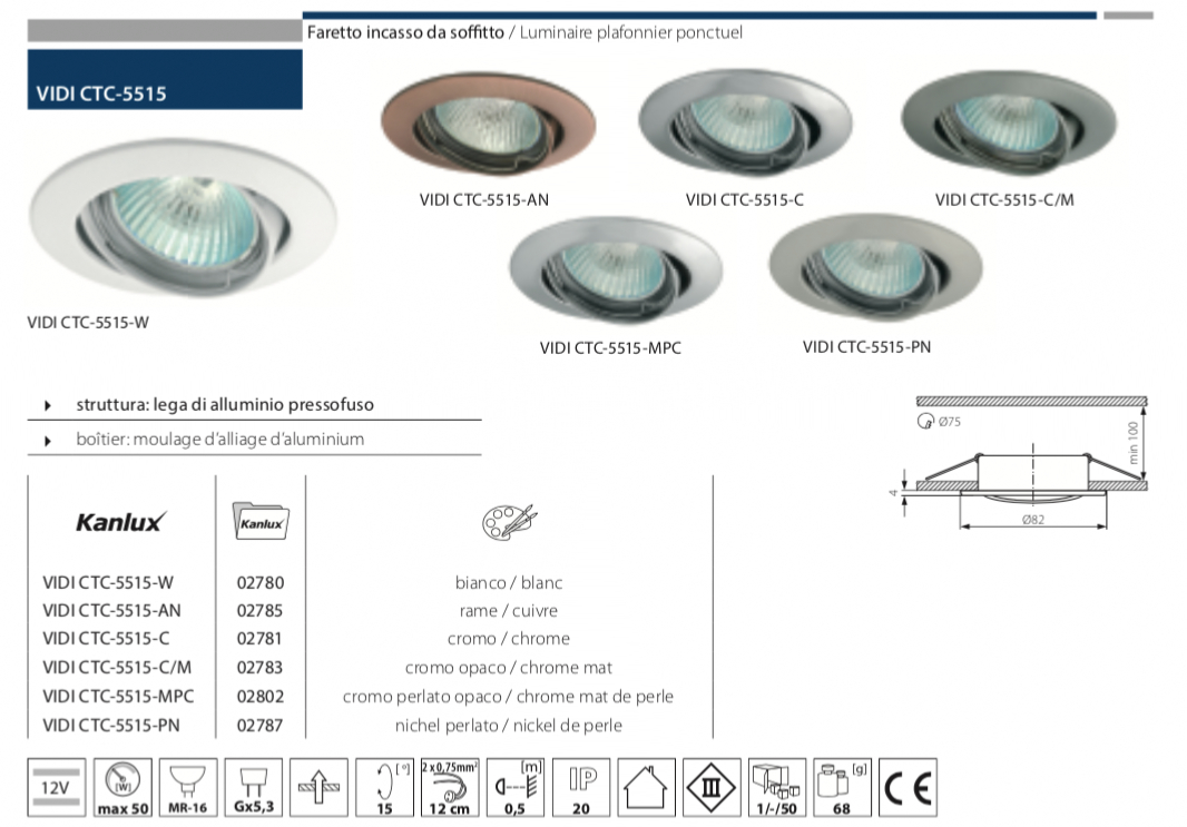 KANLUX INCASSO ROTONDO ORIENTABILE CROMATO VIDI CTC-5515-C 2781