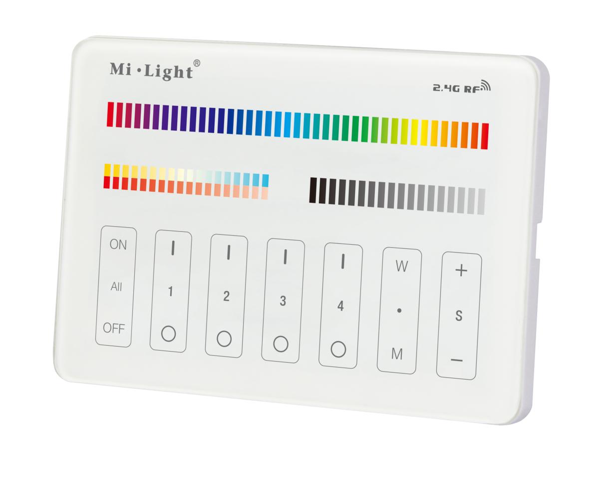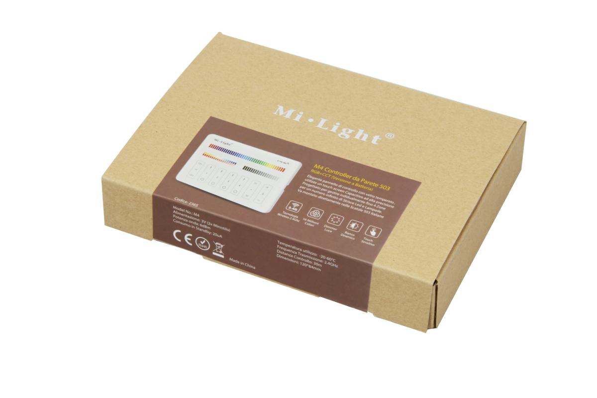 Controller da muro adatto per scatola 503 italiana . Gestisce i dispositivi RGB+CCT 4 zone