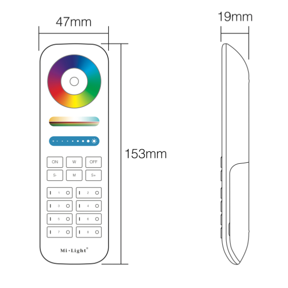 Modello.: FUT037S+ Voltaggio: DC12V-24V Output : Max. 6A/CH , Totale Max.12A Distanza Controllo : 30m Dimensioni : 74.5x36x17mm Caratteristiche : -Gestione 3 IN 1 : RGB/RGBW/RGB+CCT - Estensione segnale RF 2.4G - Switch PWM Alta Frequenza / Bassa Frequenza -Memoria -Modalità "no disturb" dopo black out gestibile da telecomando ( default attivo) -Garanzia: 2 anni
