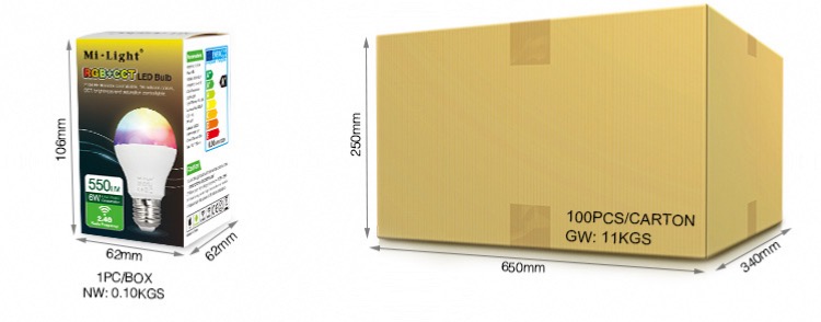 • Tecnologia di trasmissione wireless 2.4G RF • Può controllare i prodotti della serie MiBoxer/Mi-Light 2.4G • Distanza di controllo: 30 m • 16 milioni di colori tra cui scegliere • Luminosità, temperatura colore e saturazione regolabili Tensione di lavoro: 3 V (AAA*2 PZ) Consumo energetico in standby: 15μA Potenza di trasmissione: 6dBm RF: 2,4 GHz Metodo di modulazione: GFSK Distanza di controllo: 30 m Temperatura di lavoro: -10~40°C Certificazione: CE, EMC, RED