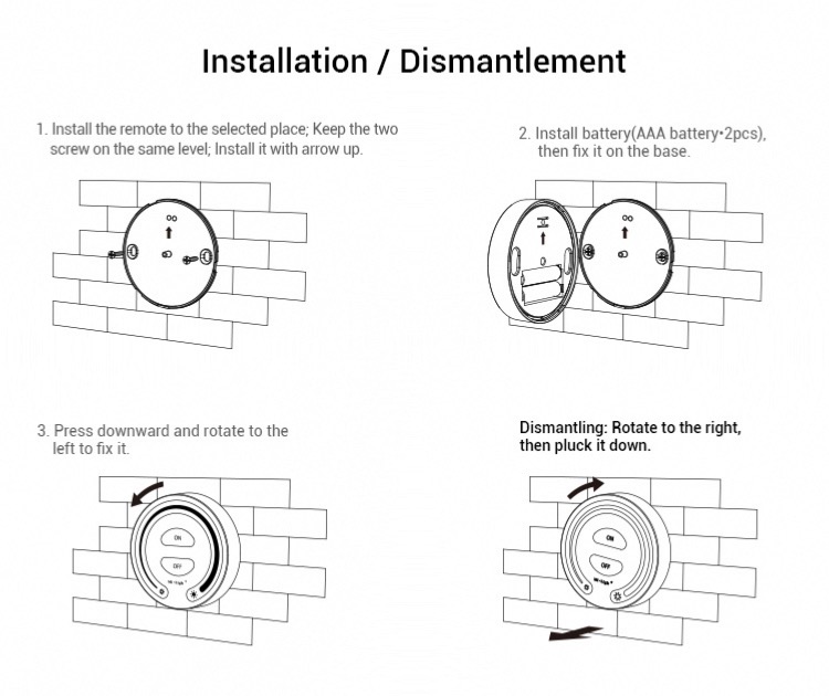 Prodotto: AC Triac Dimmer (WIFI + 2.4G + Push) Modello: TRI-C1WR Input : 100-240V~ 50/60Hz Output : 100-240V~ Corrente Output: Max 1.36A Output Potenza: 150W@110V; 300W@220V Metodo di dimmerazione: Wi-Fi+ 2.4G + Push Temperatura di lavorazione: -10~40℃ Tecnologia Wifi : Wi-Fi IEEE 802.11b/g/n 2.4GHz Distanza di controllo RF 2.4G: 30m Garanzia: 2 anni