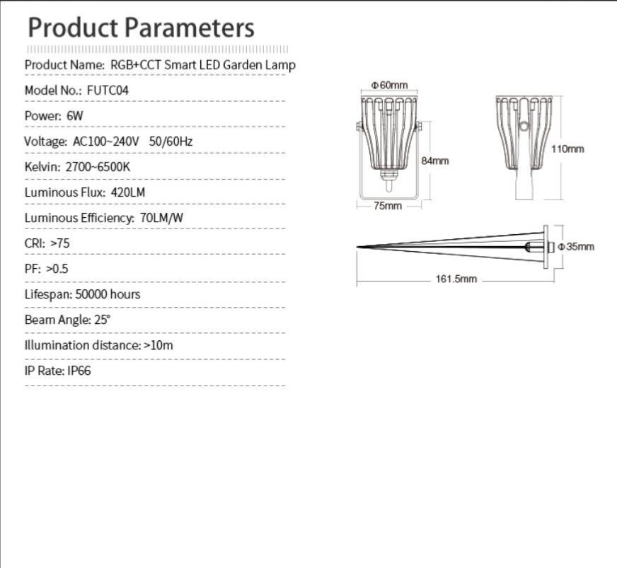 Product Name: 6W RGB+CCT Smart LED Garden Lamp