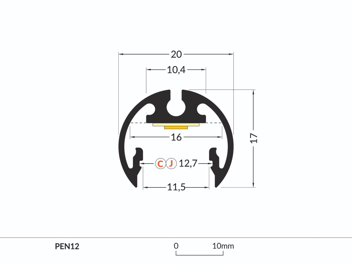 PROFILO PEN12 C ANOD. 2000MM (PROFILO+COVER OPACO)