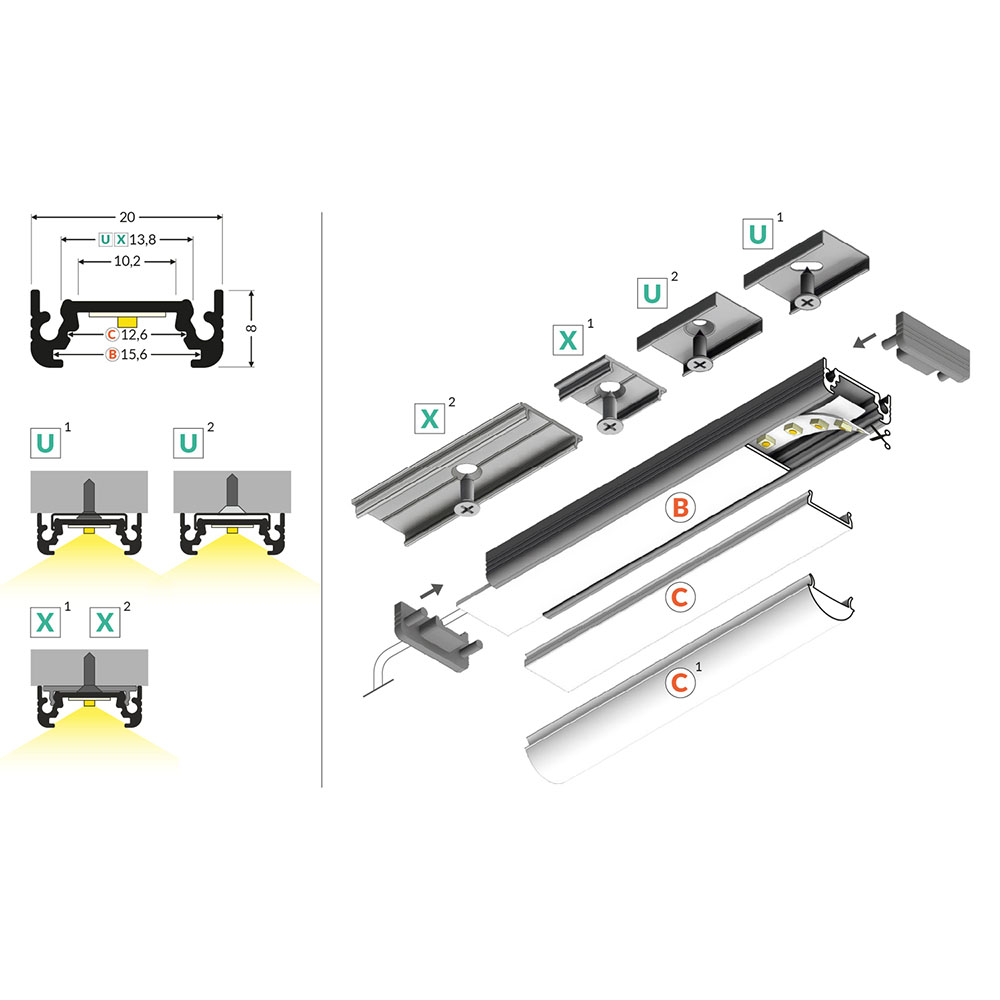 Clip a farfalla adatto per tutti profili con Ganci U/X Modelli Compatibili : GROOVE10 DEEP10 FLAT8