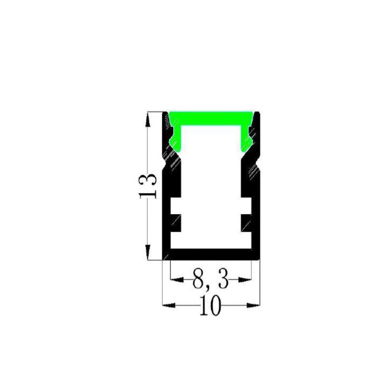 Potenza Dissipabile : Max 12W/Mt Larghezza Max Pcb : 7mm Finitura : Anodizzato Cover : Opaco 75% Colore Tappi : Grigio Tipo Ganci : Inox Dimensioni : 10 x 13 x 2000mm Il Set Comprende: -1 Profilo 2000mm -1 Cover Opaco 75% 2000mm -2 Tappi Grigi -2 Ganci Inox