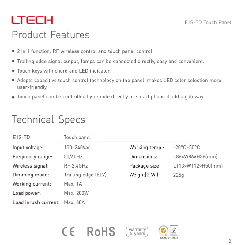 Funzione 2 in 1: controllo wireless RF e Taglio di fase