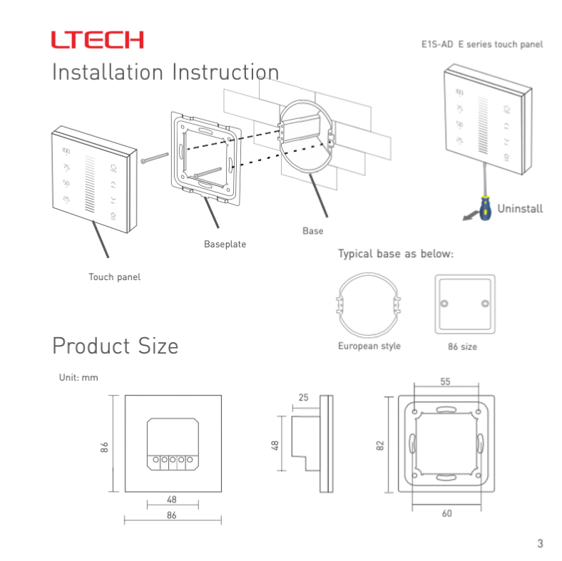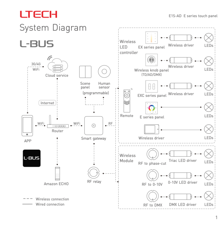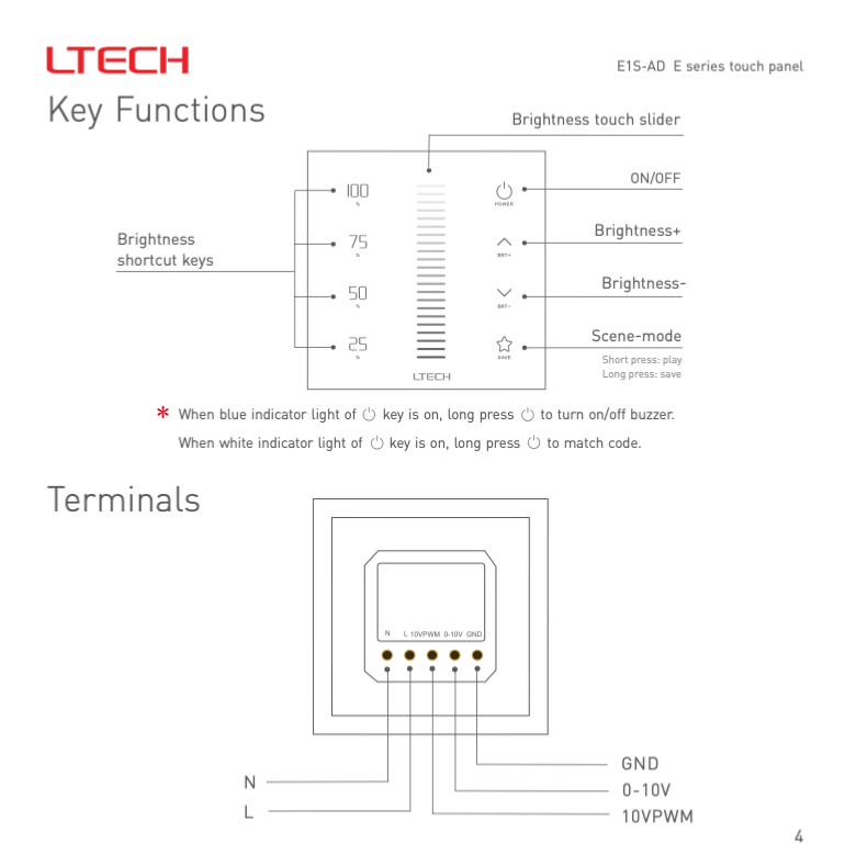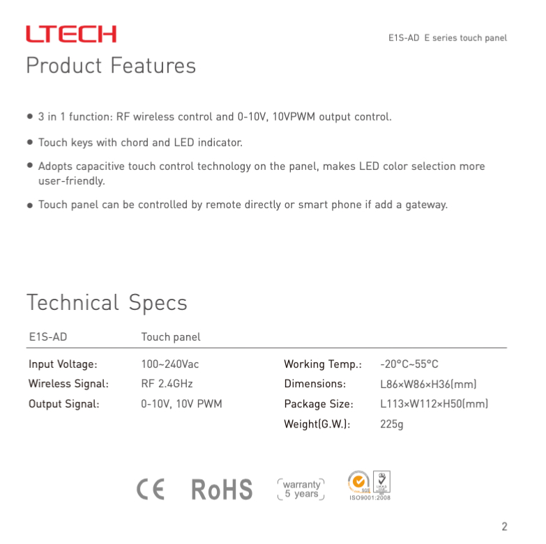 LTECH DIMMER PARETE TOUCH E1S-AD 2IN1 RF/0-10V