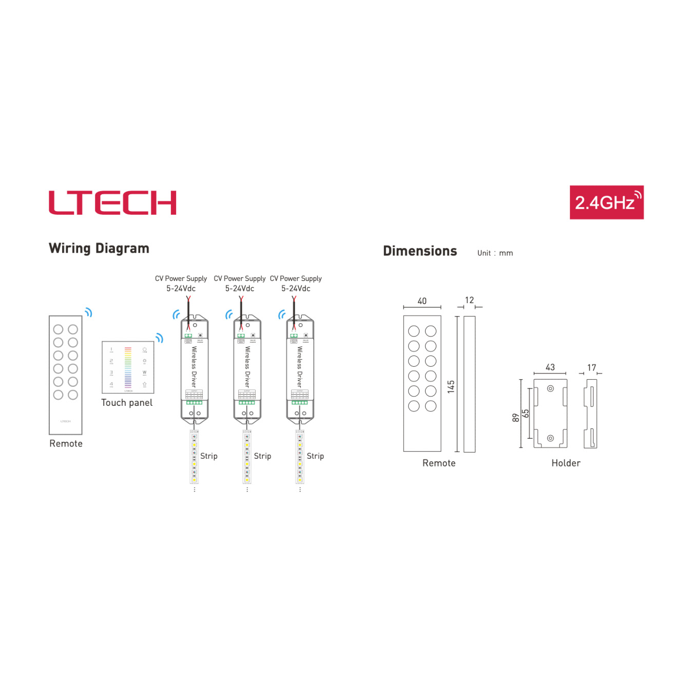 - Funziona con i driver wireless F4-3A/F4-5A/F4-CC per controllare gli apparecchi LED.