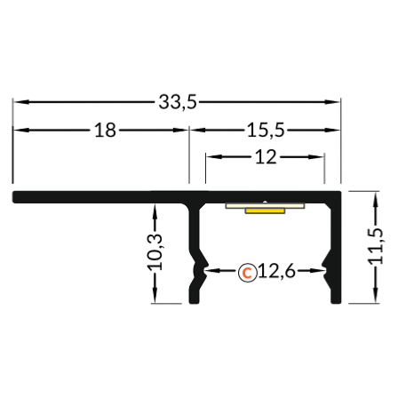 Dimensioni : 33.5 x 11.5 x 2000mm