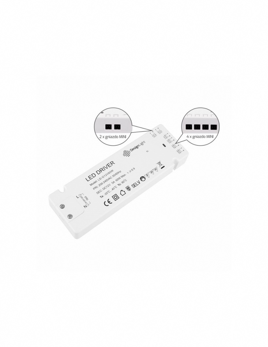 Viene utilizzato per alimentare l'illuminazione a LED con una tensione di 12V DC e una potenza totale non superiore a 60W.