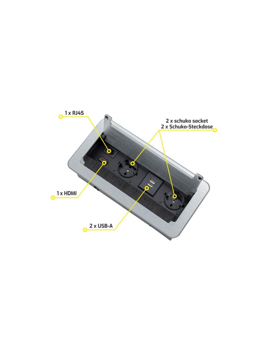 INBOX SILVER 2XSCHUKO , 2XUSB , 1XRJ45, 1XHDMI CAVO 1.5M CON SPINA