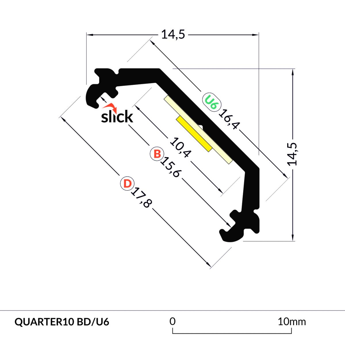 PROFILO QUARTER10 D/U6 ANOD. 2000MM (PROFILO+COVER BOMBATO)