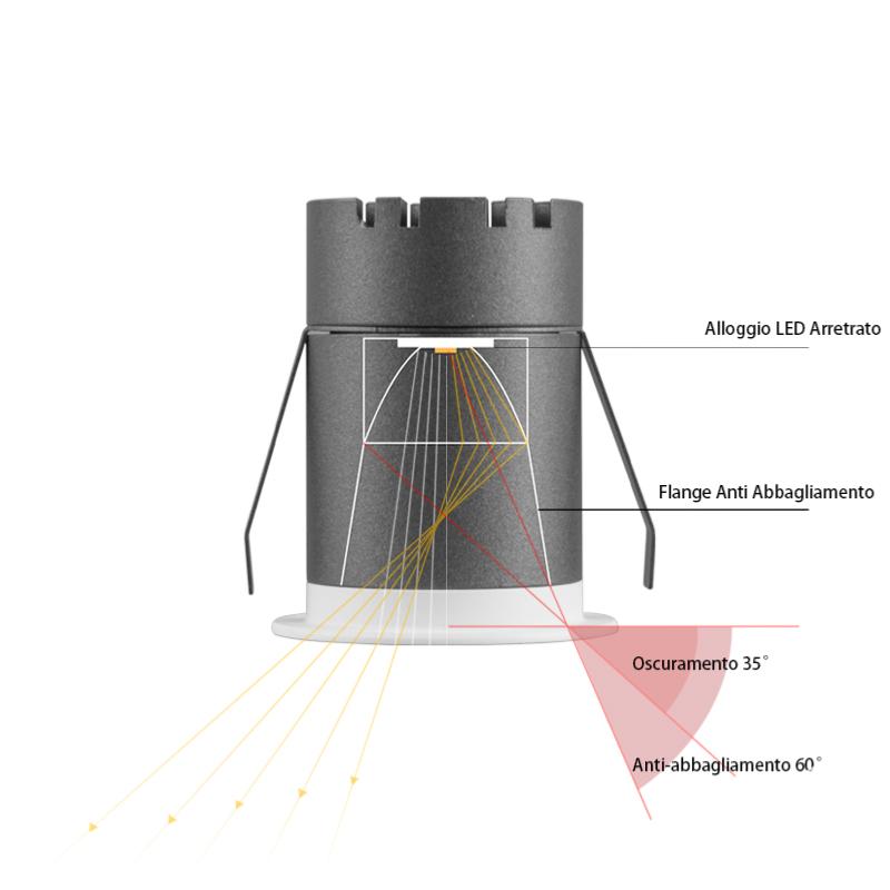 Spot direzionabile da incasso F.45mm Bianco 7W 36D 3000K 11107RA/W/W