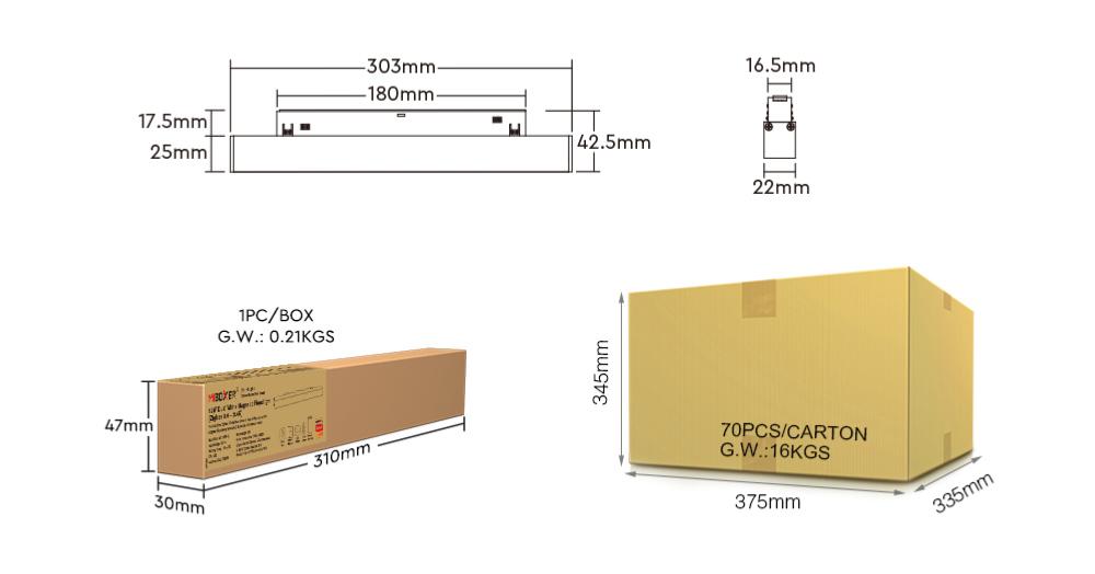 Tensione di ingresso: 220-240V Potenza: 240W Grado IP: IP20 Classe isolamento elettrico: SELV Dimmerabile: DALI2 - Pulsante Dimensioni: 450x32x23mm Tª Amb. Funzionamento: -20°C ~ 70°C Garanzia: 5 anni