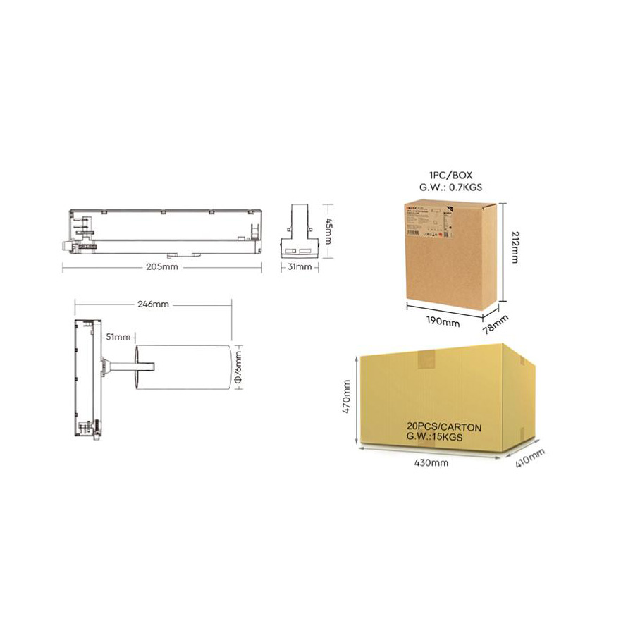 Tensione di ingresso: 220-240V Potenza: 240W Grado IP: IP20 Classe isolamento elettrico: SELV Dimmerabile: DALI2 - Pulsante Dimensioni: 450x32x23mm Tª Amb. Funzionamento: -20°C ~ 70°C Garanzia: 5 anni