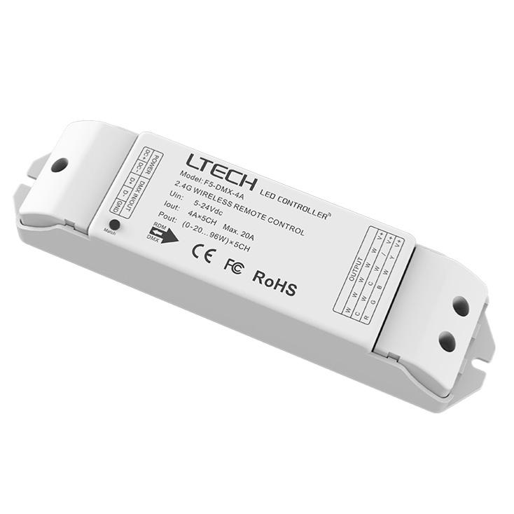 LTECH RICEVITORE DMX512 / RF 2.4GHZ 4CH 5-24V 20A F5-DMX-4A