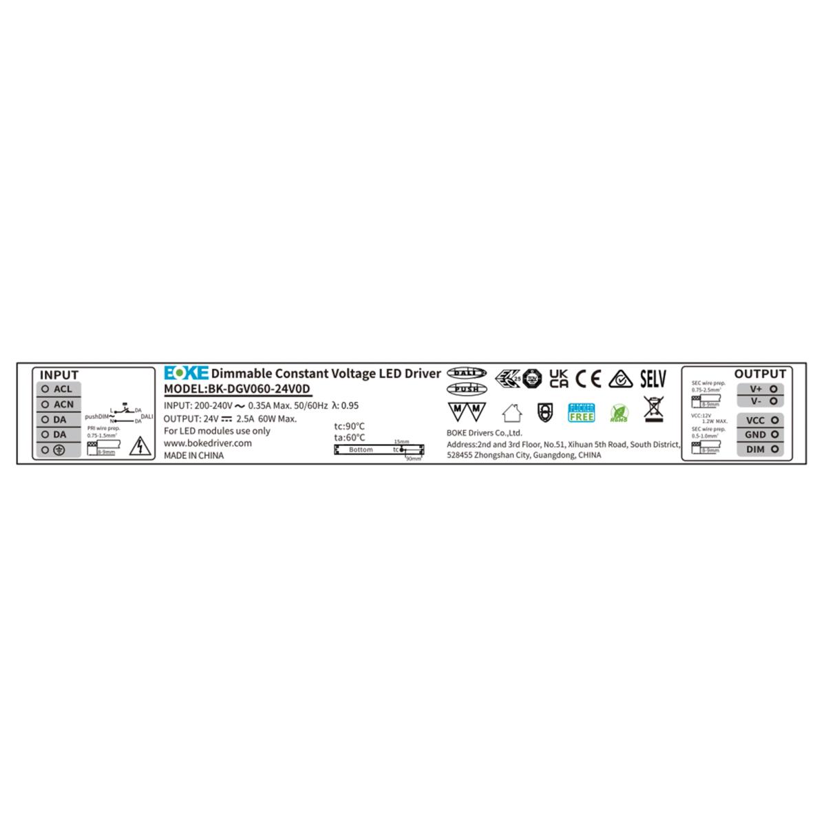 BOKE DRIVER DIMMERABILE DALI2 / 1-10V / PUSH 3in1 24V 60W DGV060-24V0D
