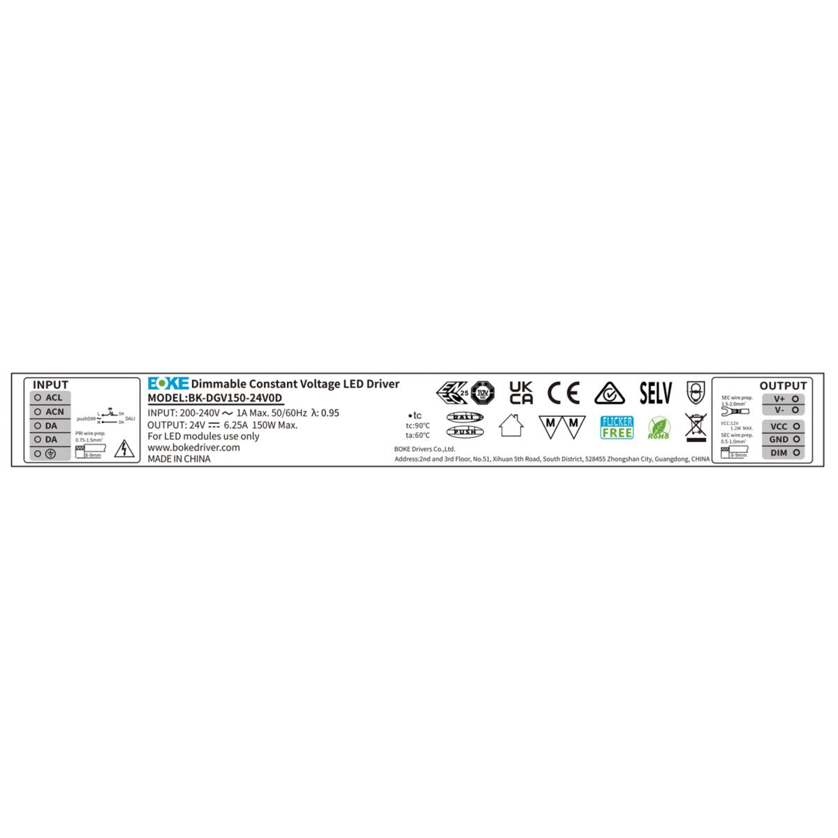 BOKE DRIVER DIMMERABILE DALI2 / 1-10V / PUSH 3in1 24V 150W DGV150-24V0D