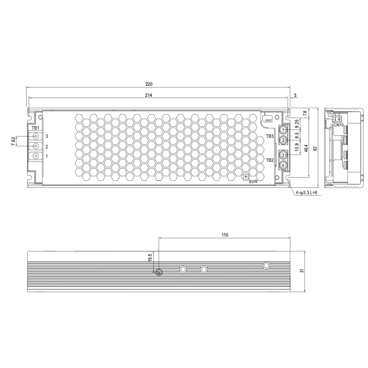 Dimensioni: L220x62x31mm