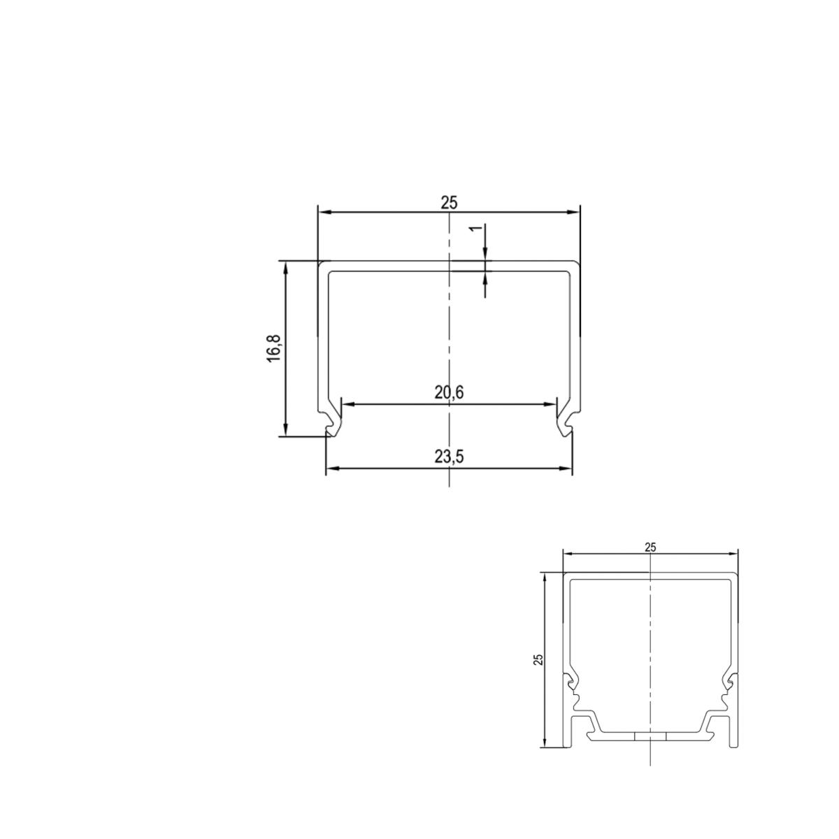 PROFILO UNI12 B/U ANODIZZATO 2MT FROSTED