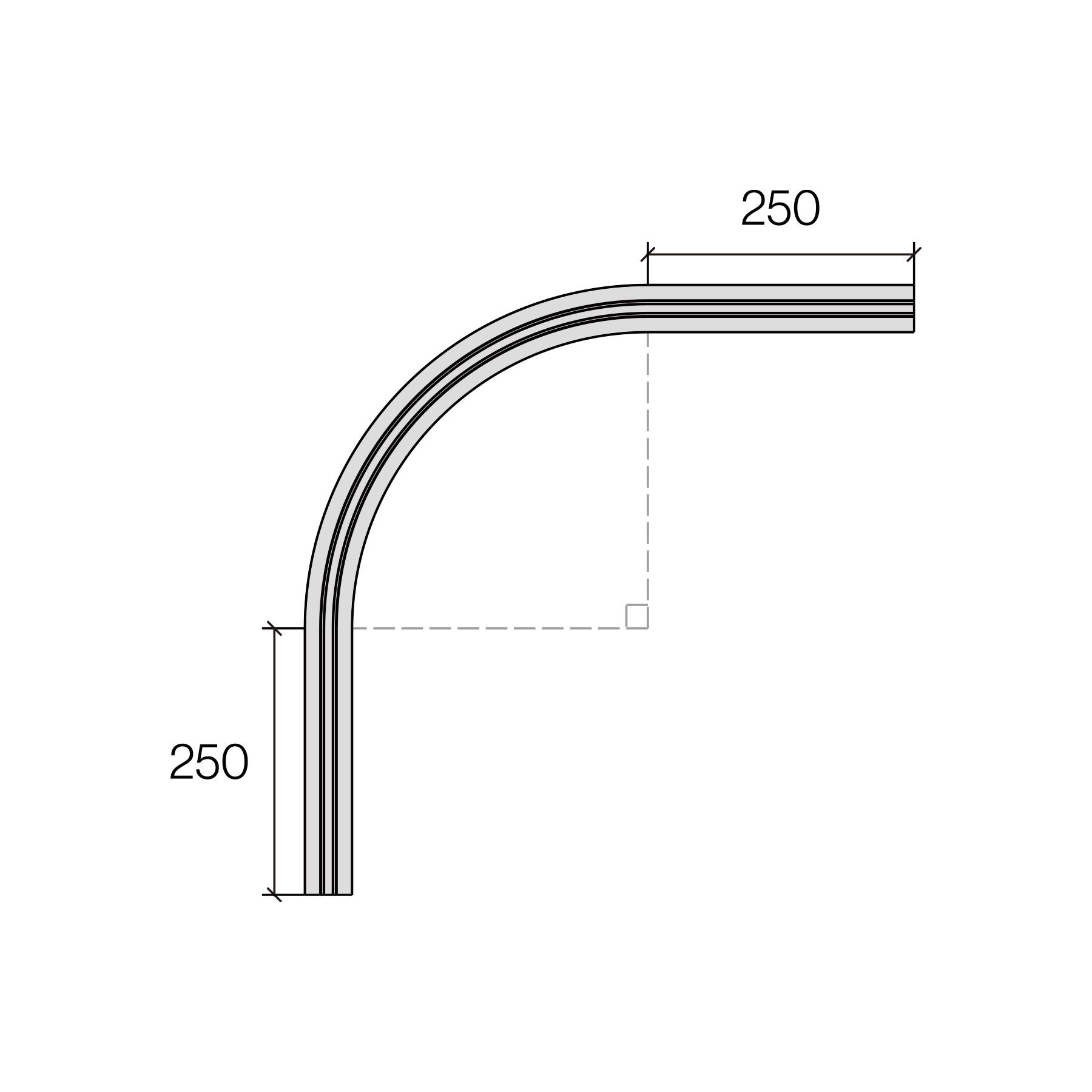 CURVA M7E Ø600MM / C90° R300 BINARI M7 INCASSO M7E NERO